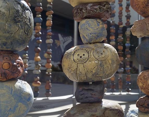 Balderas Elementary in Fresno Unified turned Spark! funds into a school-wide artistic monument. The stones featured in the monument were created by students, and staff. Every student on campus participated bringing visual art to 659 students. A celebration of the Balderas community spirit, the stone design included integrated social studies lessons and ceramic arts instruction led by Ritsuko Miyazaki of Clay-Mix Studio.