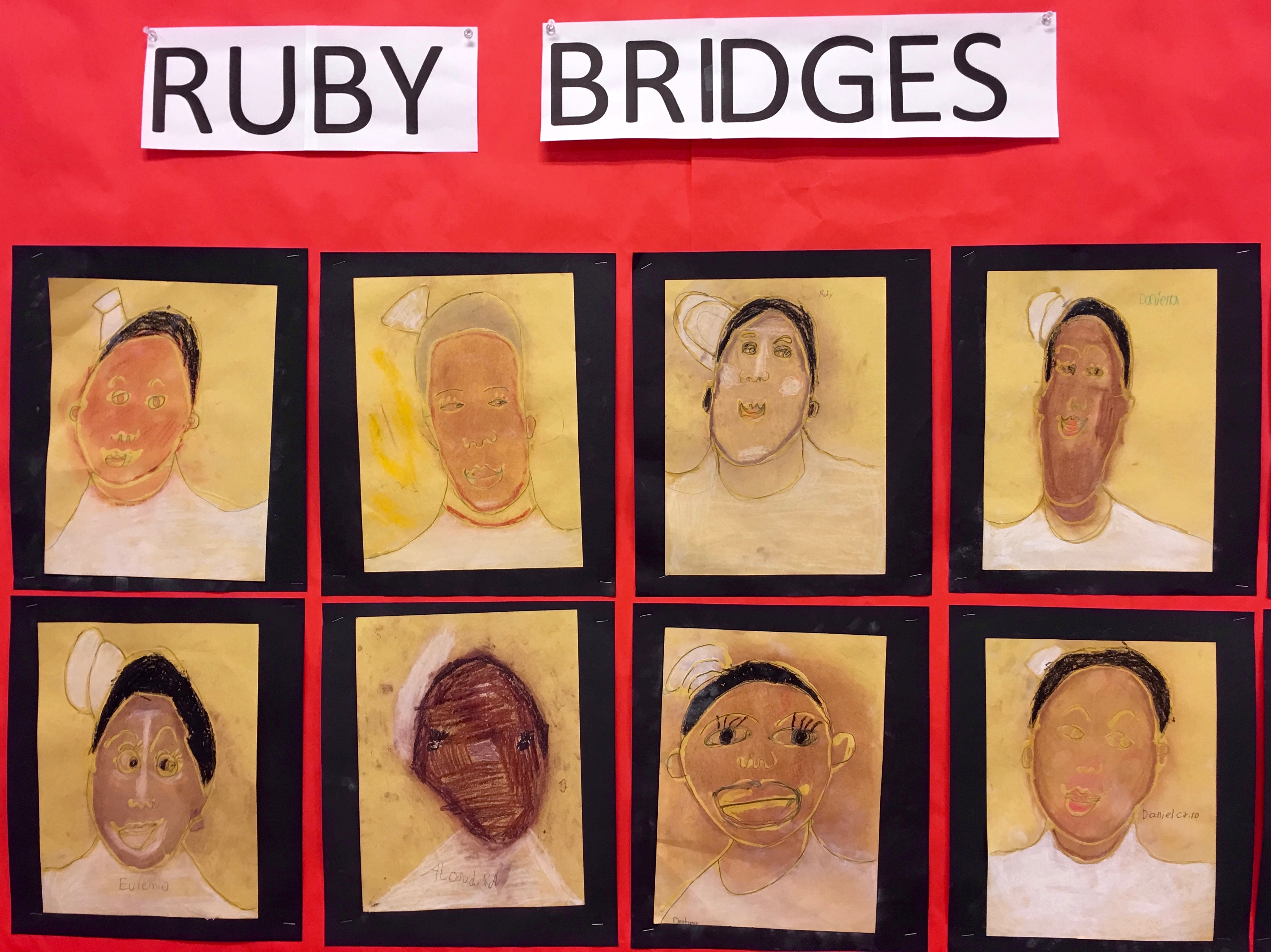 Columbia hired teaching artists trained through the Fresno Arts Council to teach visual arts in the primary grades. This collaboration has led to wonderful student artwork integrated with the core curriculum, for example the study of Ruby Bridges in English/Language Arts and Social Studies integrated with portrait painting.